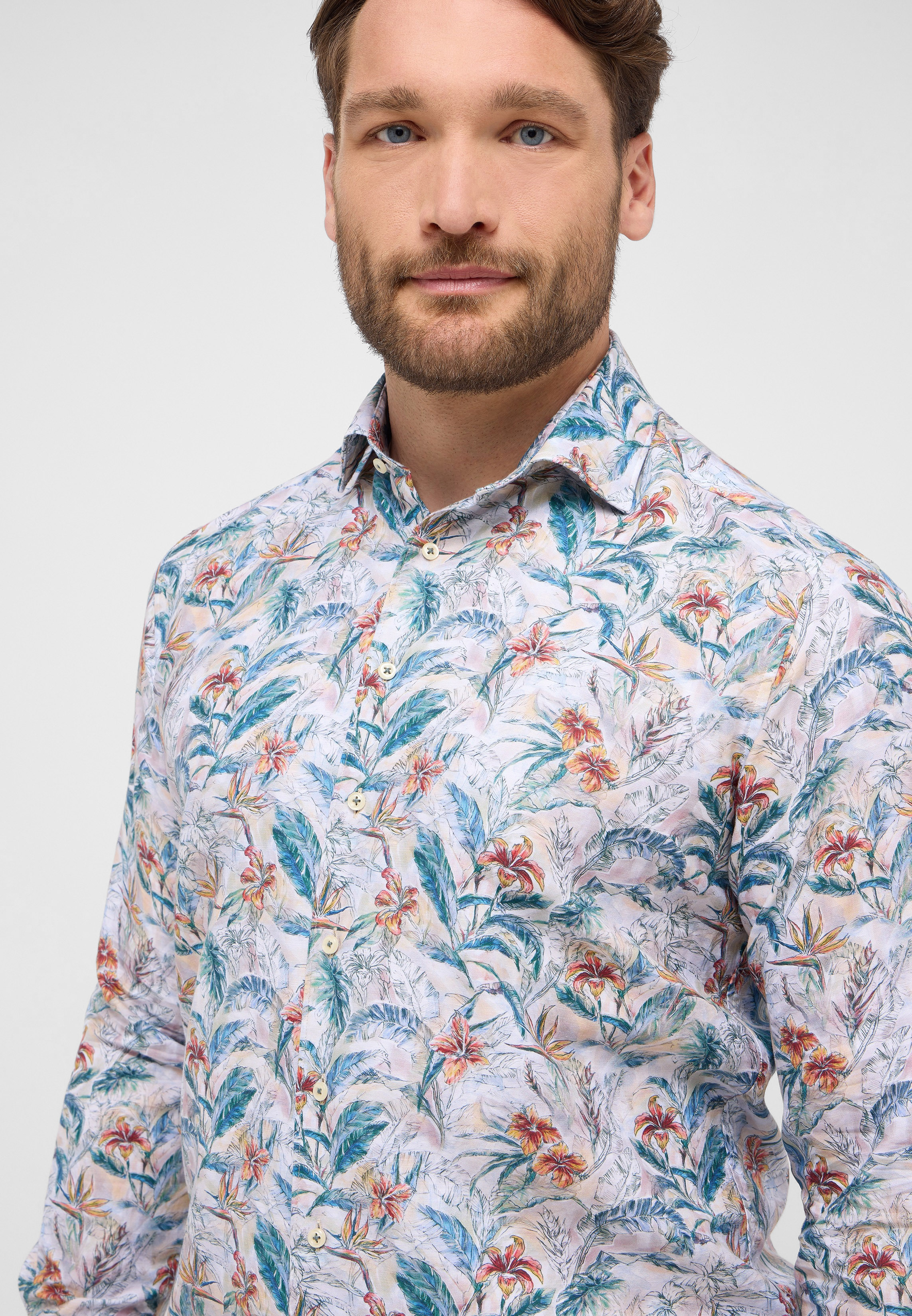 1863 by ETERNA COMFORT FIT Langarm Hemd floral print leinen soft 2603-24-ES69 - LINEN QUALITY