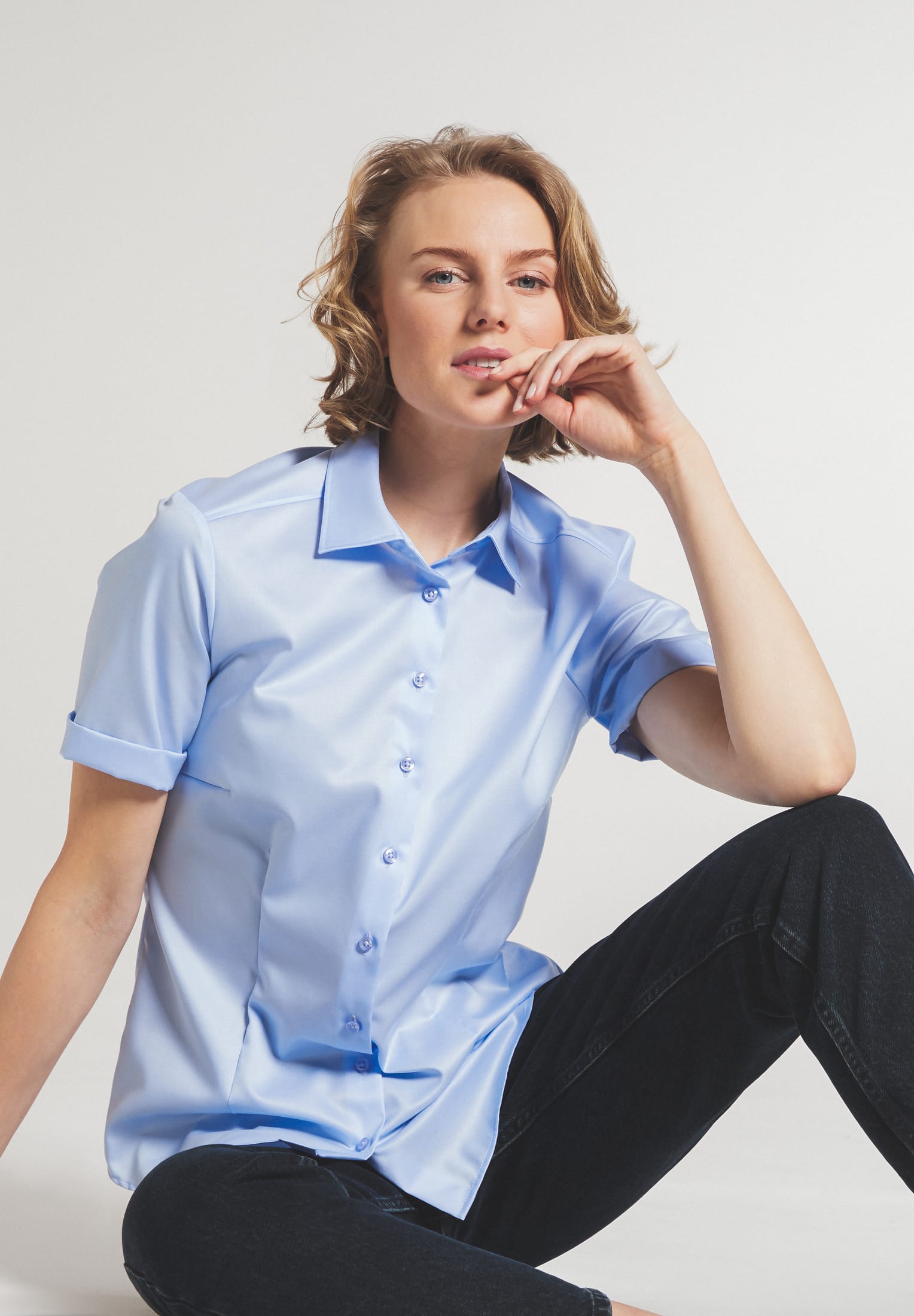 Produktinformationen "ETERNA CLASSIC FIT COVER Kurzarm Bluse hellblau twill 5008-10-H790"