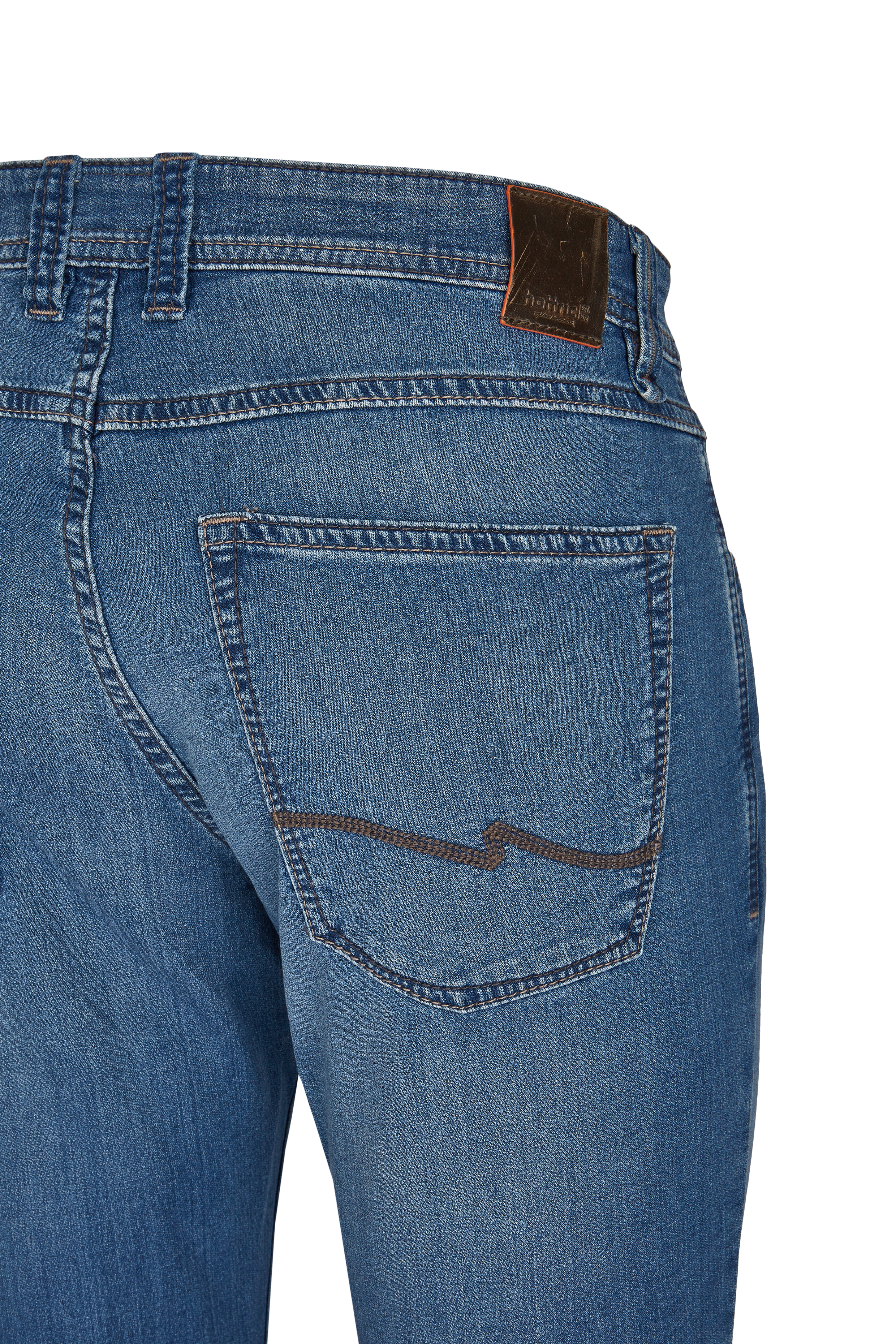 Design Besonderheiten: Backpockets mit Stitching, Used Look, farblich abgesetzte Nähte