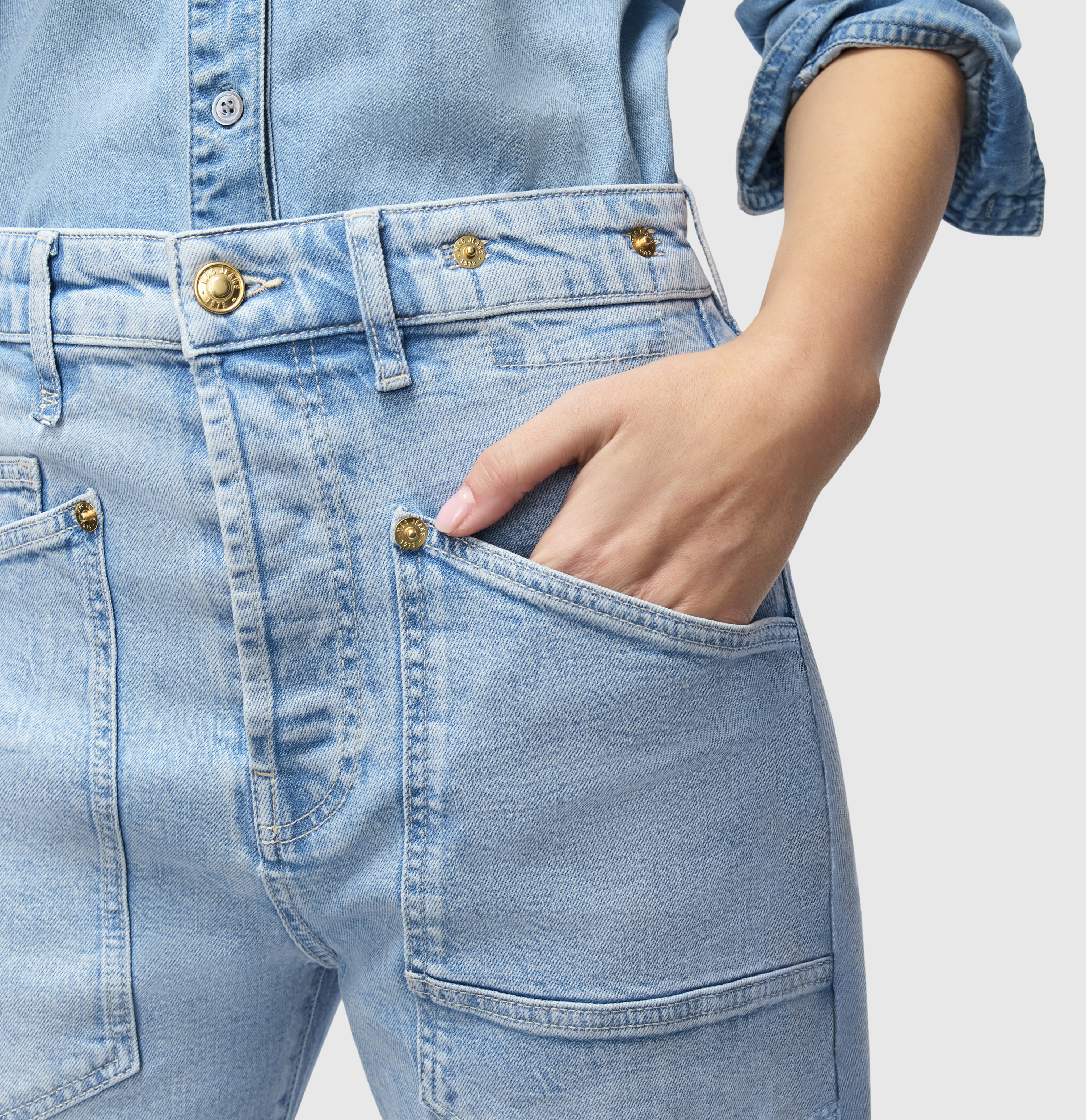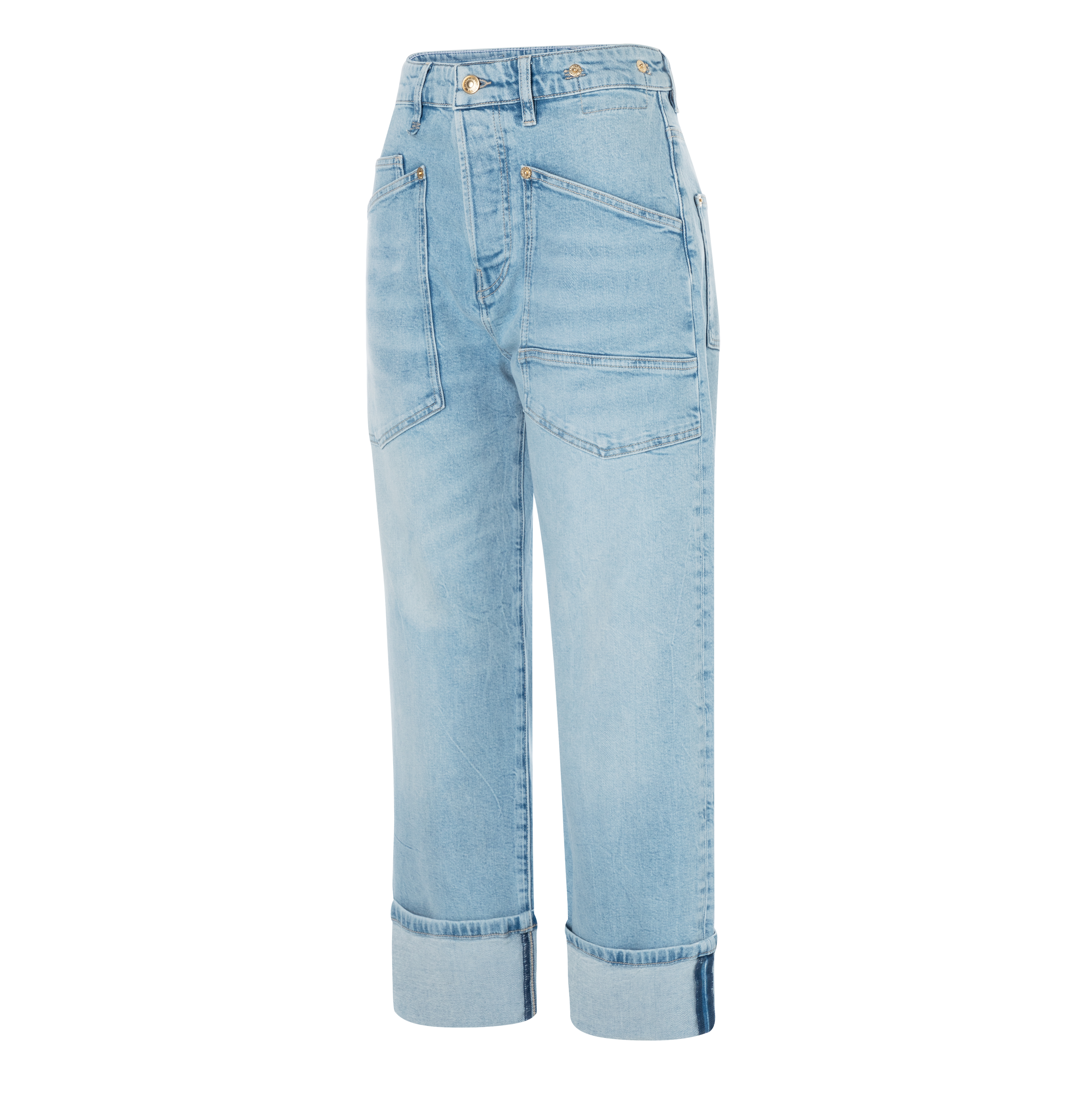 | Design Besonderheiten: | Niedriger Schritt, Nietendetails an den Taschen, Used Look, gekrempeltes Beinende (nicht genäht) |