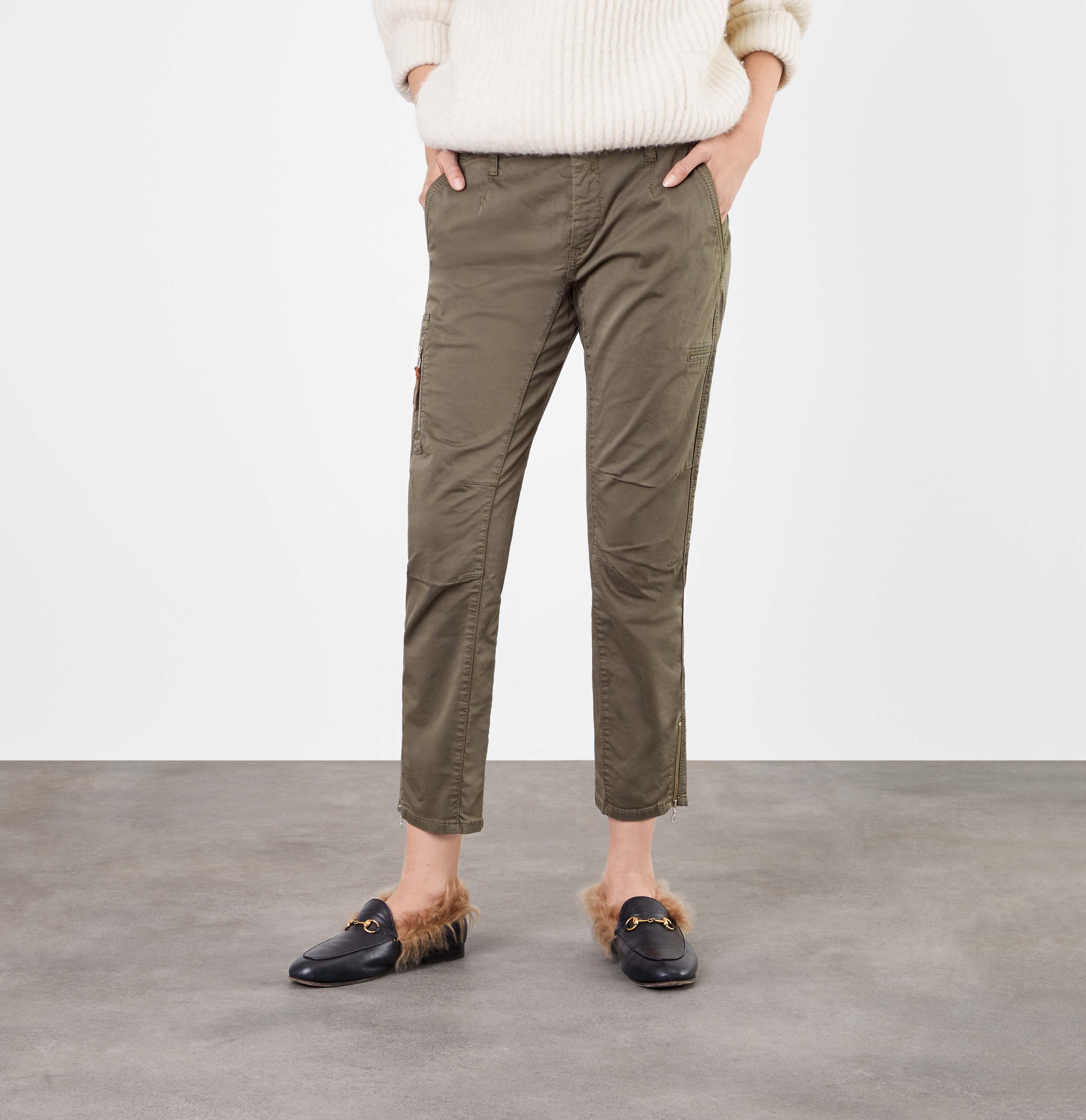| Design Besonderheiten: | Beinabschluss mit Reißverschluss, Seitliche Taschen, angedeutete Gesäßtaschen |